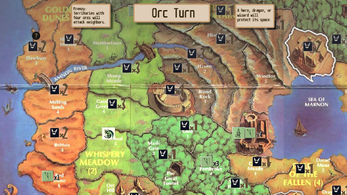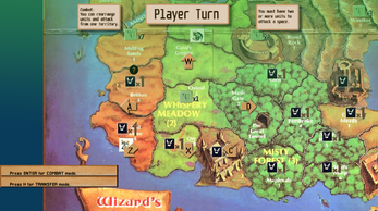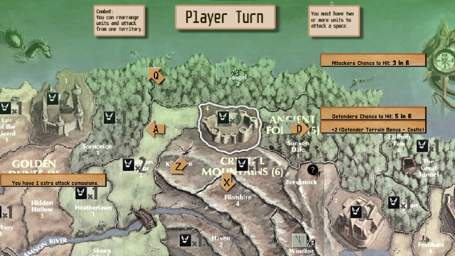 Battle with your forces across the island of Marnon! You, with the help of Peacemaker the Wizard, can campaign across 44 territories against occupying orcs. Your goal- find the treasures! Only your wits can keep you alive against the orcs and the dragon.